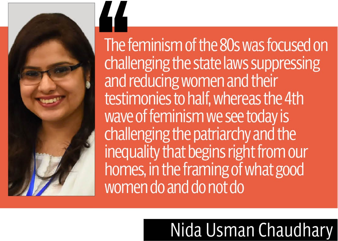 “Feminism of the 80s was focused on challenging the state laws suppressing and reducing women and their testimonies to half, whereas the 4th wave of feminism we see today is challenging the patriarchy and the inequality that begins right from homes, in the framing of what good women do and do not do,” she elaborated.